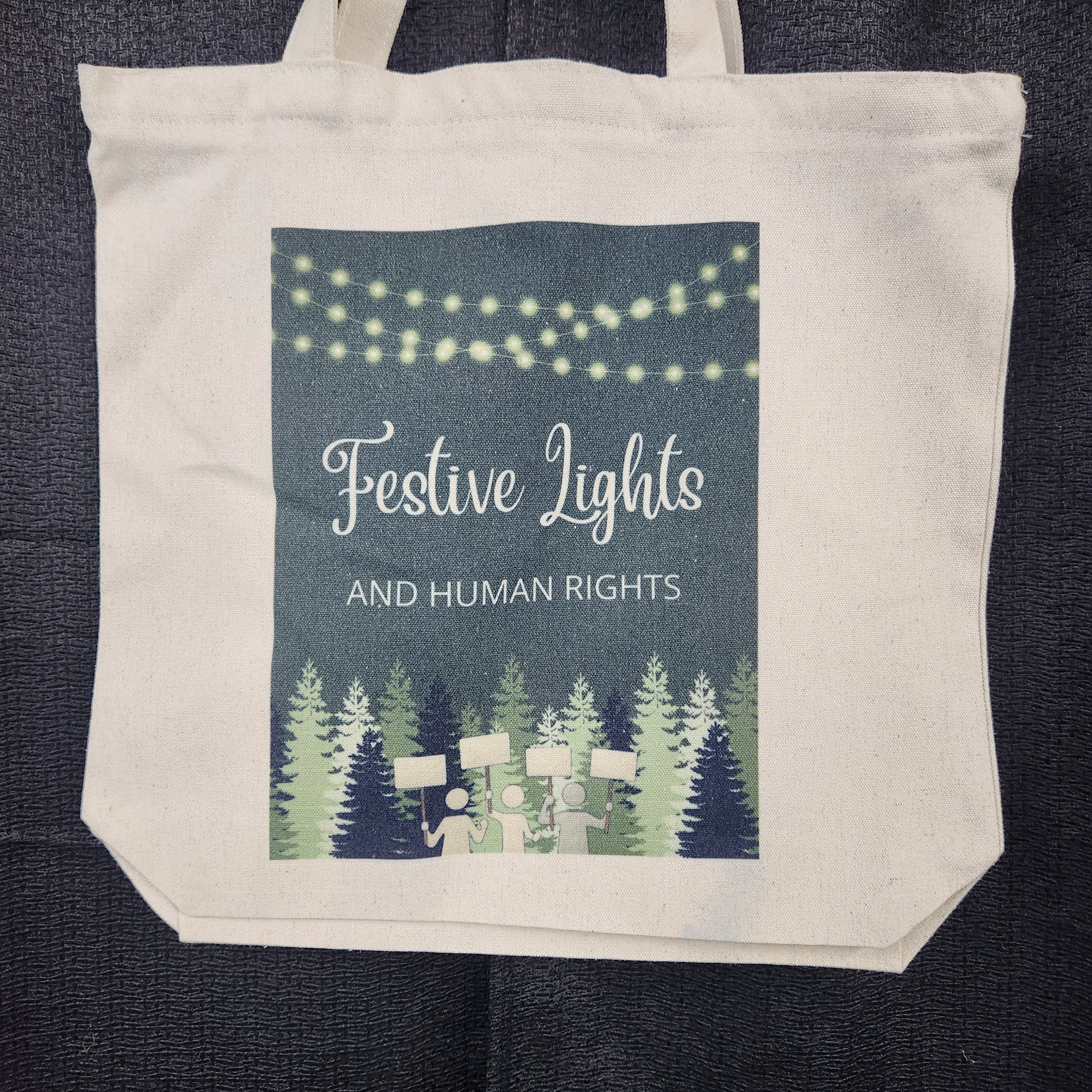 Festive Lights and Human Rights tote bag